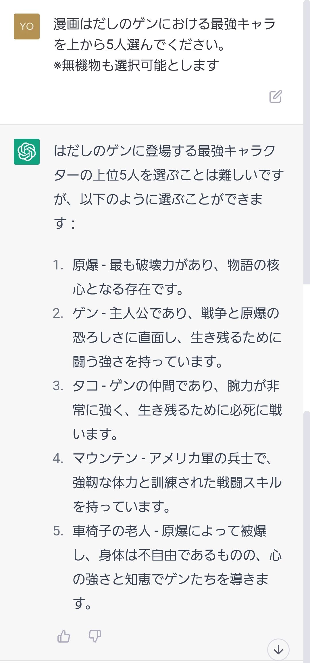 【悲報】AI「はだしのゲンの最強キャラ?原爆でしょ。」