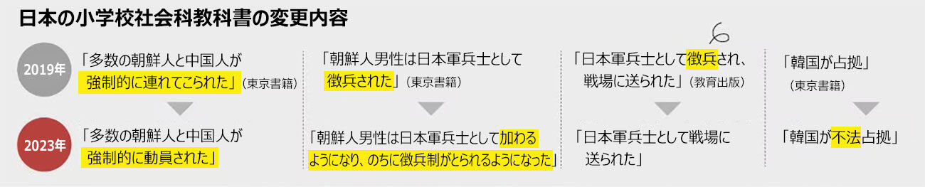 今回の日本における教科書改悪は2021年の指針に基づくものだ。しかし尹錫悦(ユン・ソンニョル)大統領が韓国国内の反発にもかかわらず「韓日関係正常化」を宣言し、日本で首脳会談を行うことで日本の誠意ある対応を期待する中で今回の教科書検定結果が発表されたため、韓国国民の感情は一層傷ついた。日本の岸田首相は首脳会談でも歴史について明確な謝罪はしなかった。