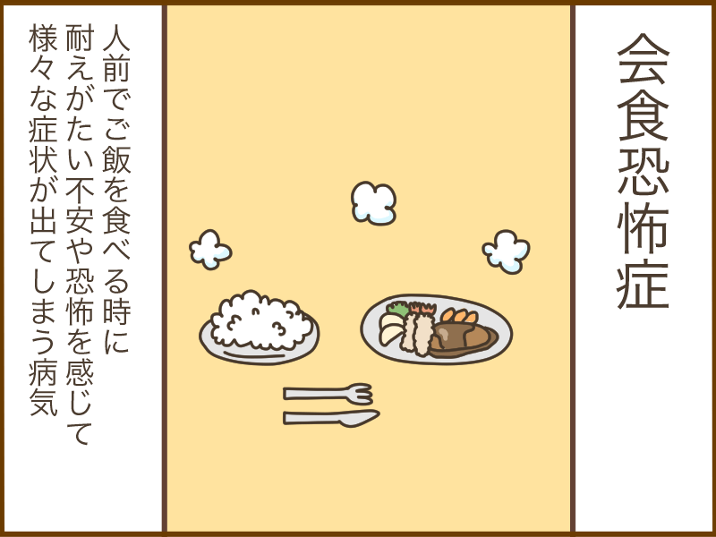 会食恐怖症とは、誰かと一緒に食事をすることに対して強い不安や緊張を抱く症状で「社交不安症」という心の病気のひとつ。例えば、食事を強要された経験などがトラウマとなり、「相手に迷惑をかけるかもしれない」「吐いてしまうかもしれない」などの不安から、会食の場面で動悸やめまいなど体に不調が生じて次第に会食を避けるようになるという。