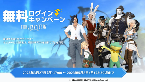 FF14「3/27~5/8まで無料ログインキャンペーンやります」←これが覇権MMOの余裕。お前らも見習え