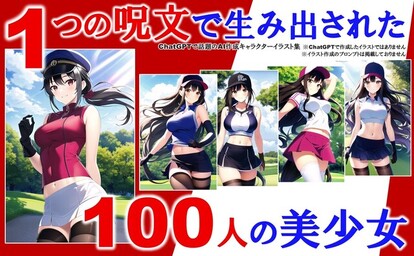 電子書籍イラスト集「1つの呪文で生み出された100人のAI妄想美少女」の「ゴルフ女子コスプレ編」が発売。無料キャンペーンも実施している。