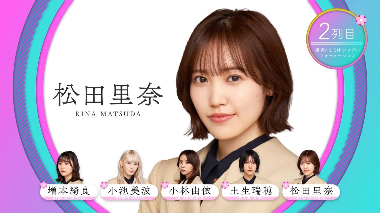 2列目左から:増本綺良、小池美波、小林由依、土生瑞穂、松田里奈