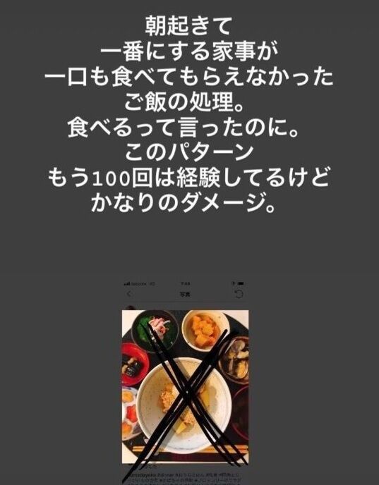 熊田はこれまでSNSなどで、夫について何度か不満をこぼしていた。大きな話題になったのは、2019年6月にインスタグラムのストーリーズにアップした「食事にバツ印」写真だ。その際、熊田は〈朝起きて一番にする家事が一口も食べてもらえなかったご飯の処理。食べるって言ったのに。このパターンもう100回は経験してるけどかなりのダメージ〉と綴っていた。