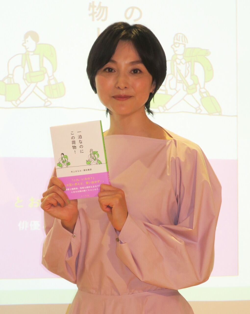 女優本上まなみ(48)が13日、エッセー本「一泊なのにこの荷物!」(ミシマ社)のサイン会を都内で行った。