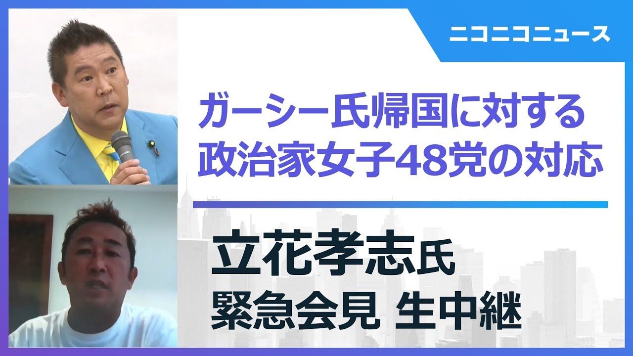 「いずれにしてもNHK党として、政治家女子48党として、立花孝志個人として、ガーシーを全力で支えていく、サポートして参ります」とも話した。