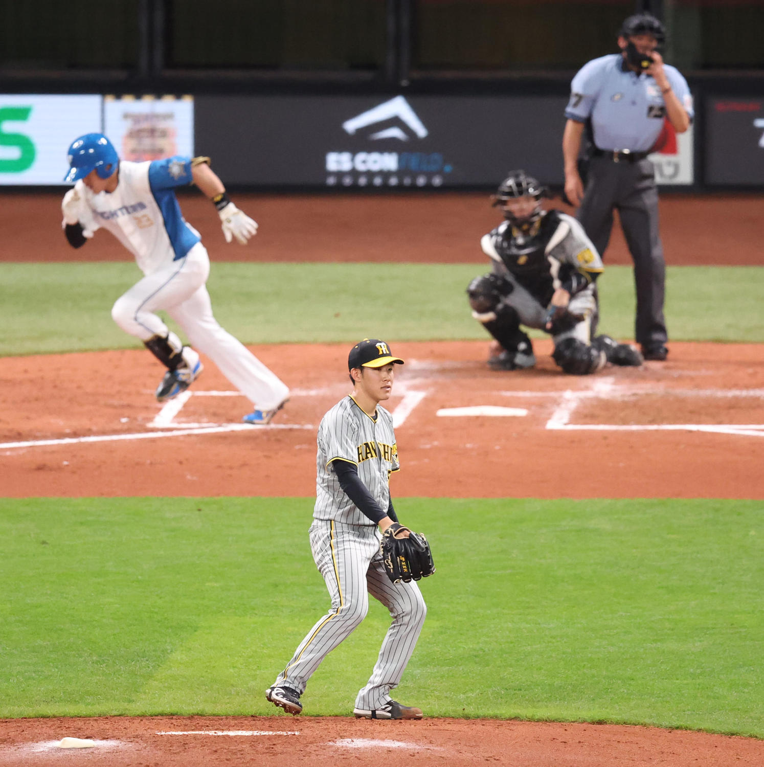 <日本生命セ・パ交流戦:日本ハム4-0阪神>◇9日◇エスコンフィールド阪神が敵地日本ハム戦で完敗した。プロ初先発のドラフト6位富田蓮投手(21)が3回3失点でプロ初黒星を喫した。岡田彰布監督(65)は元同僚の新庄剛志監督(51)との対決で、阪神戦初勝利を献上。日刊スポーツ評論家の鳥谷敬氏(41)は虎バッテリーと日本ハム打線の「カーブを巡る攻防」が勝敗を分けたと解説した。【聞き手=佐井陽介】◇ ◇ ◇阪神バッテリーは序盤から配球に苦労していました。先発はプロ初先発のドラフト6位富田投手。おそらく得意球であろうカーブを早々に選択肢から削らざるを得なくなり、配球が窮屈になったのでしょう。カーブを巡る攻防で日本ハム打線に軍配が上がったのは2回です。無死一塁から6番マルティネス選手がカーブを左中間に落とし、好機を拡大。なおも2死二、三塁、今度は9番伏見選手が同じ球種で三遊間を割ったことで、一気に情勢が日本ハム側に傾いたように感じます。伏見選手に先制打を浴びた1球はフルカウントからの勝負球。頼みの綱ともいえるカーブに再び対応され、阪神バッテリーは相当に苦しくなったと想像します。たとえば3回2死一塁、5番松本剛選手に12球粘られて四球を与えた打席でも、カーブは初球の1球だけ。富田投手は3回3失点という数字以上に苦しんだのではないでしょうか。打線は下手投げからストライクゾーンで勝負を挑んでくる先発の鈴木投手に対して、なかなか攻略の糸口を見つけ出せませんでした。救援陣との対戦も含めて、9イニングを通して奪った四球は2つだけ。ある意味、ここまで貫いてきた「四球も絡めながらつなぐ野球」が間違っていないのだと再認識できたはずです。一方、日本ハム側も課題がなかったわけではありません。少し気になったのは3回無死二塁での守備です。1番近本選手が右翼フェンス際まで右飛を打ち上げた場面。右翼手の万波選手は三塁方向へ送球しましたが、あのケースは本塁方向に投げるべきでした。二塁走者の三塁進塁は避けられなかった大飛球。送球がそれるリスクも考えた上で、冷静に本塁送球を選ぶべきだったように感じます。新庄監督率いるファイターズはまだまだ若いチーム。細部を地道に改善していけば、さらにチーム力を上げられるはずです。(日刊スポーツ評論家)https://news.yahoo.co.jp/articles/171b4de139f1a4841adee481dd335bd3a1770abd