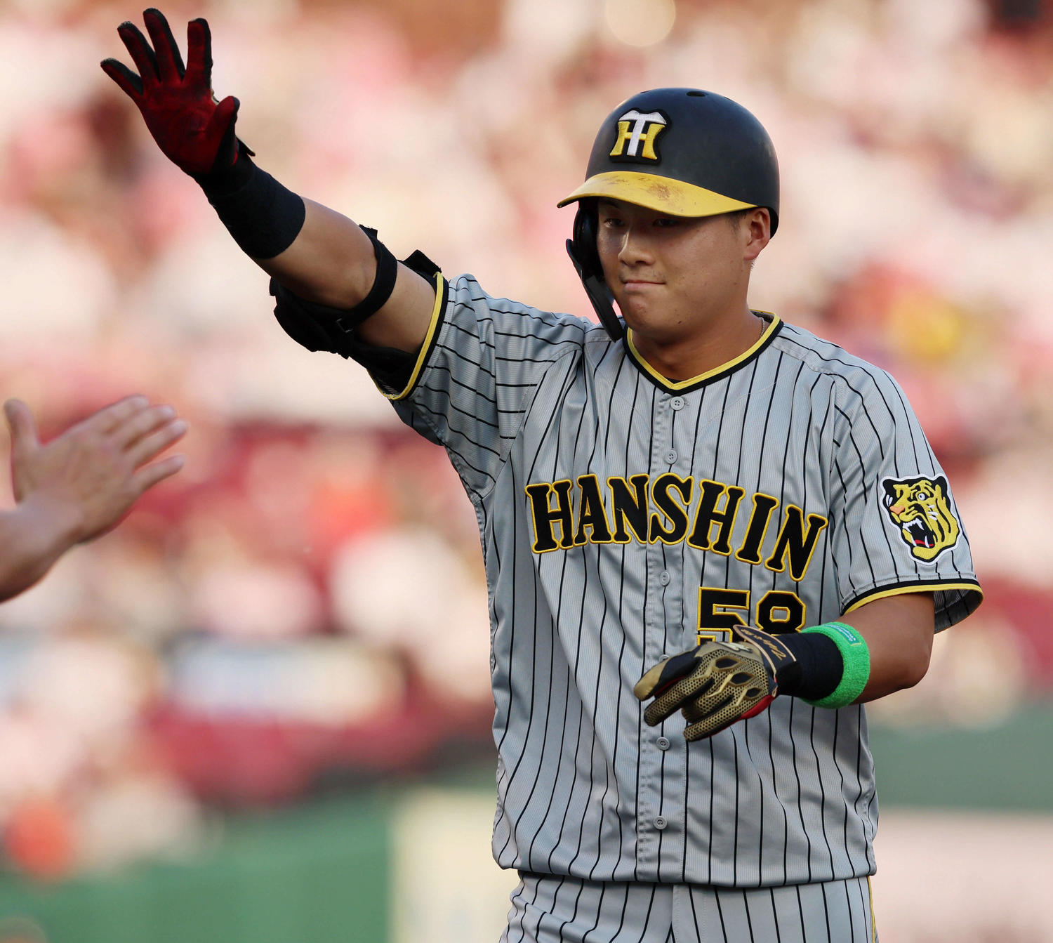 <日本生命セ・パ交流戦:日本ハム-阪神>◇10日◇エスコンフィールド阪神前川右京外野手(20)が、値千金の同点打を放った。2点ビハインドの4回1死二、三塁。3ボール1ストライクから、日本ハム伊藤の147キロを捉え一、二塁間を破った。右前2点適時打で試合を振り出しに戻した。一塁ベース上では初々しく右手を突き上げた。これがプロ初適時打初打点だ。高卒2年目の前川は、5月末に1軍初昇格。6日楽天戦でプロ11打席目での初安打となる右前打を放つと、翌7日の同戦はプロ初のマルチ安打を記録。前日9日の日本ハム戦でもプロ初長打となる二塁打を含む2安打を放っていた。5番佐藤輝が凡退後、先輩のお株を奪う頼もしい活躍。20歳の存在感を日に日に増している。https://news.yahoo.co.jp/articles/c573a95216796784b5ad45b746a679d215d9d80b