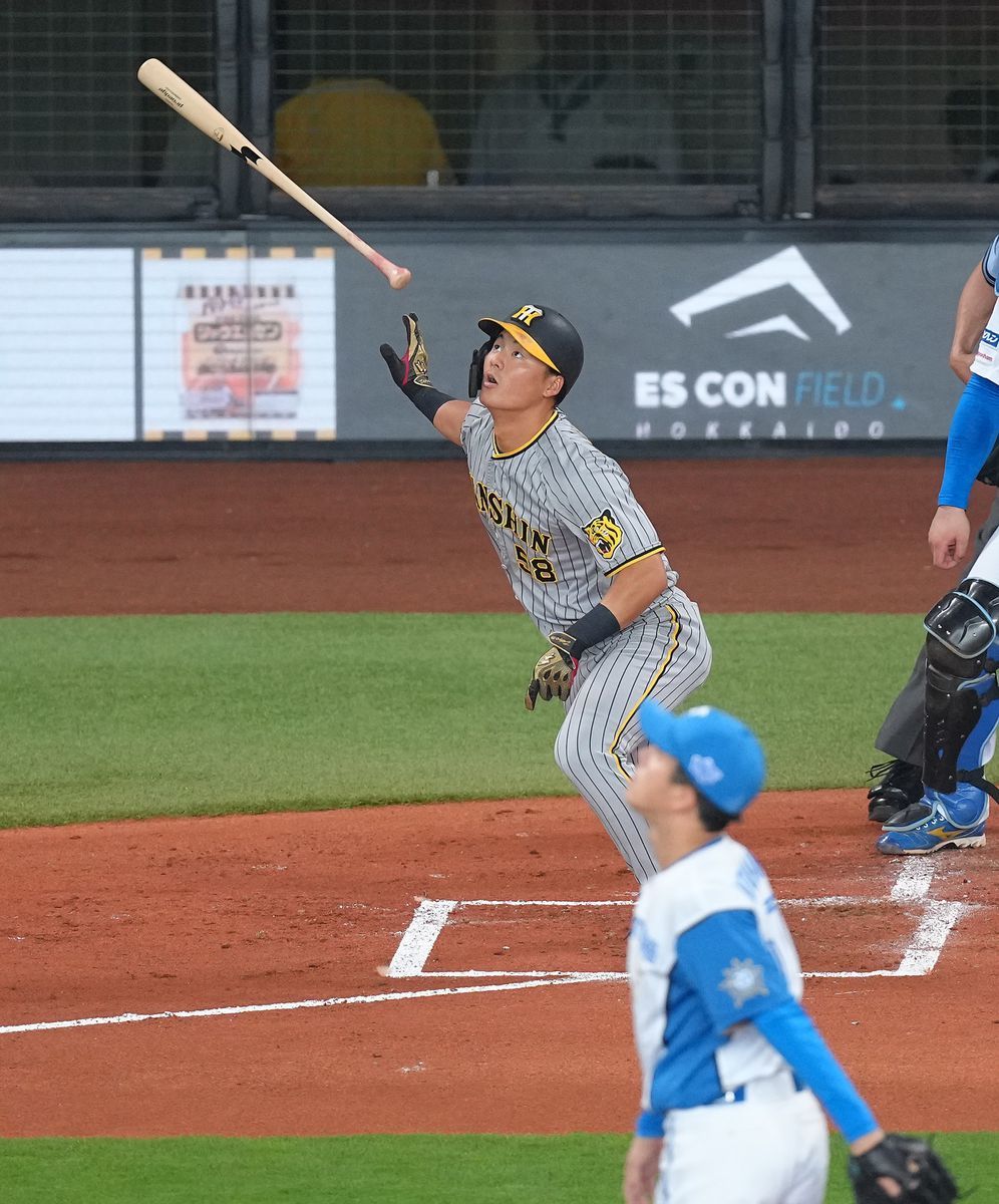 (日本生命セ・パ交流戦、日本ハム0ー1阪神、3回戦、日本ハム2勝1敗、11日、エスコン)阪神・前川右京外野手(20)が不振の佐藤輝明内野手(24)に代わって、プロ初の「5番」(右翼)で出場。連敗ストップに貢献した。0-0の二回1死から日本ハム・北山亘基投手’24)の内角151キロ直球を捉え、右翼へプロ初の三塁打。続く渡辺諒内野手(28)の中前適時打につなげた。「しっかりと引っ張れたのがよかった。クリーンアップは長打がいるのかなと。その中で長打が出たのは良かった」5月30日の西武戦(ベルーナ)で1軍デビューを飾り、交流戦期間でプロ初安打、プロ初打点をマークするなど、〝初モノ尽くし〟で成長を示している。「2打席目の満塁では初球のストライクを見逃している。自分で仕掛けていけるように」と反省も忘れない。13日からの6連戦に向けて「体のコンディショニングを整えて、6連戦に入っていきたい」と力を込めた。(新里公章)https://news.yahoo.co.jp/articles/3a764145c681118683f4fcbd288cf6c4d7814f3f
