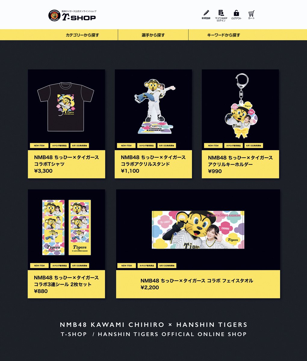阪神は12日、NMB48の川上千尋(24)とタイガースのコラボグッズの発売を発表した。13日よりチームショップアルプスなどで発売開始。15日は川上がチームショップアルプスの1日店長に就任し、コラボグッズのPRやイベント限定グッズのプレゼントが行われる。
