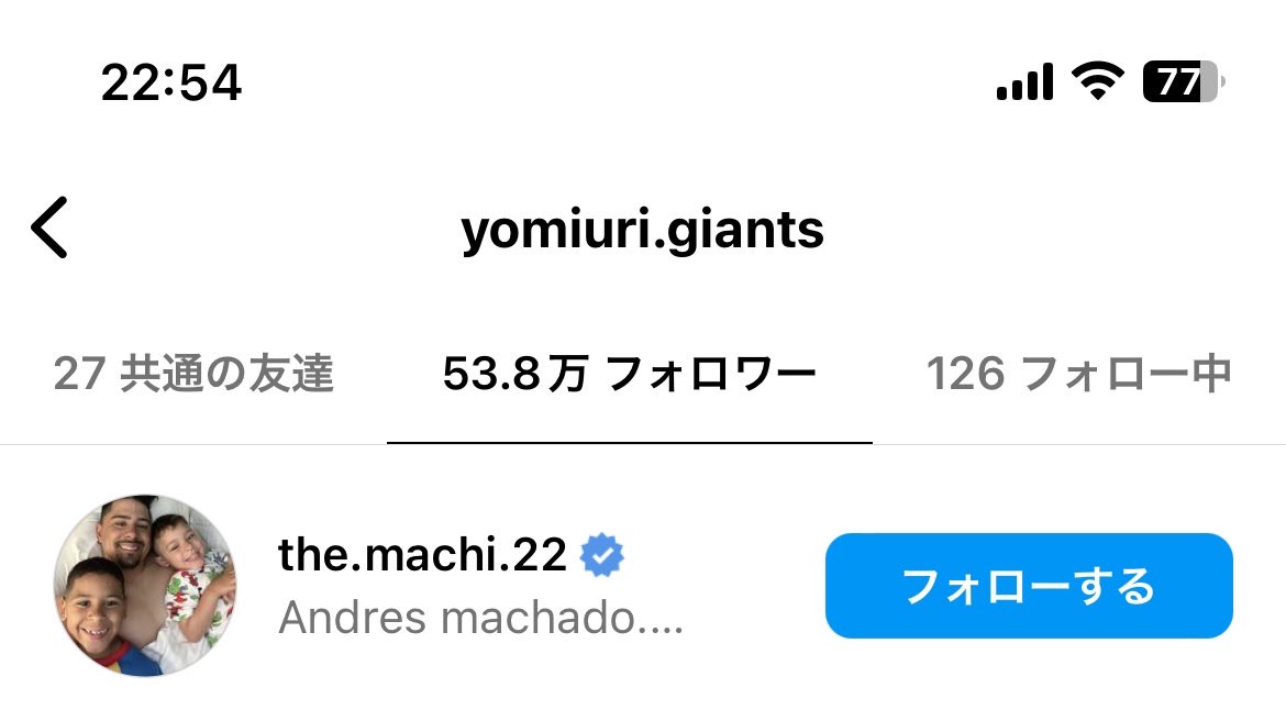 🇻🇪Andres Machadoアンドレスマチャド(30)が巨人公式をフォローしている👀