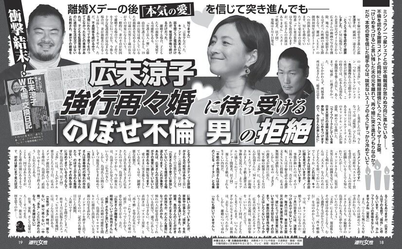“再々婚”を望む広末にとっては、これすら2人の愛の“障害”の1つでしかなく、恋心は燃え上がる一方だ。