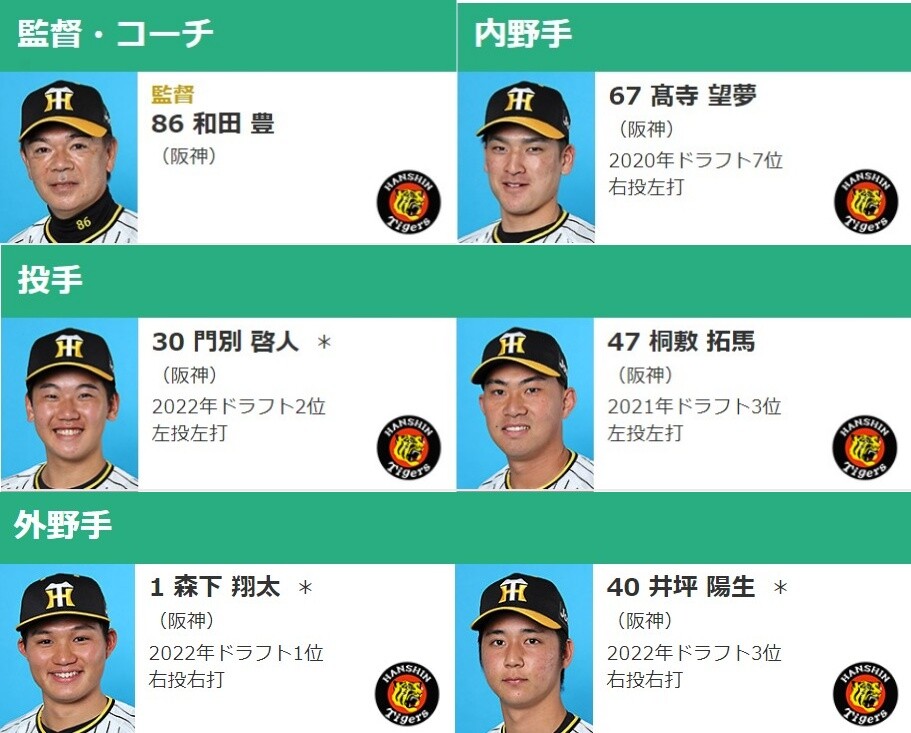 フレッシュオールスター 阪神出場選手は森下、井坪、高寺、門別、桐敷の5名