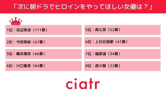 それでは、「朝ドラで主役を演じてほしい若手女優」トップ5から見ていこう。