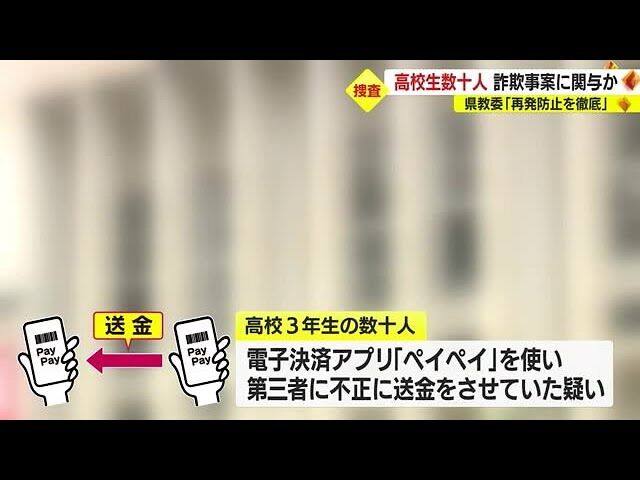 鹿児島県内の公立高校に通う複数の生徒が電子決済アプリを使って第三者に不正に送金させる詐欺行為をした疑いがある問題で、