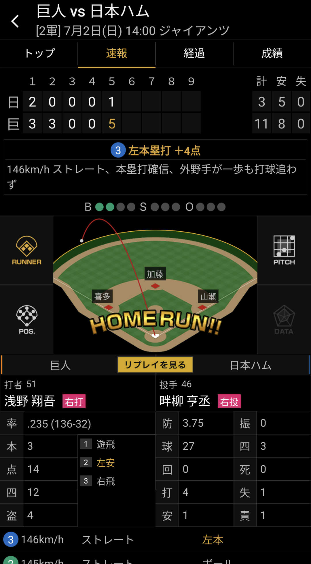 2軍巨人ドラ1浅野翔吾確信満塁ホームラン