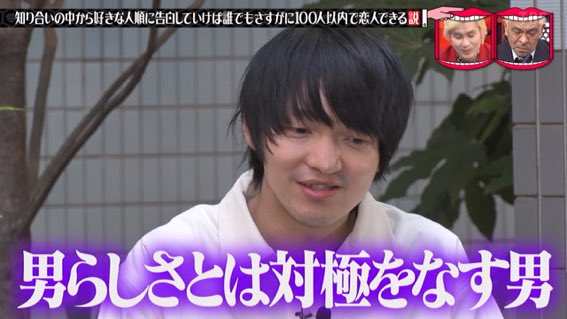 知り合いの中から好きな人順に告白していけば、誰でもさすがに100人以内で恋人できる説・・・本気で彼女が欲しい芸人パーパーほしのディスコが企画に挑戦!本当に知り合いの中から目当ての女性への告白を成功させ…カップル誕生となるのか?#水曜日のダウンタウン #tbs— 水曜日のダウンタウン (@wed_downtown) May 26, 2021
