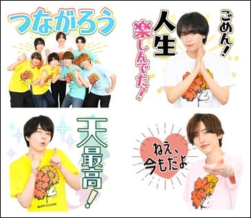 道枝駿佑は、デビュー曲「初心LOVE」の歌詞「ねぇ、今もだよ」、大橋は自己紹介ギャグ「おしりぷりんぷりん」、西畑はおなじみの造語「天最高!」など、なにわ男子らしさ満載のスタンプを用意。