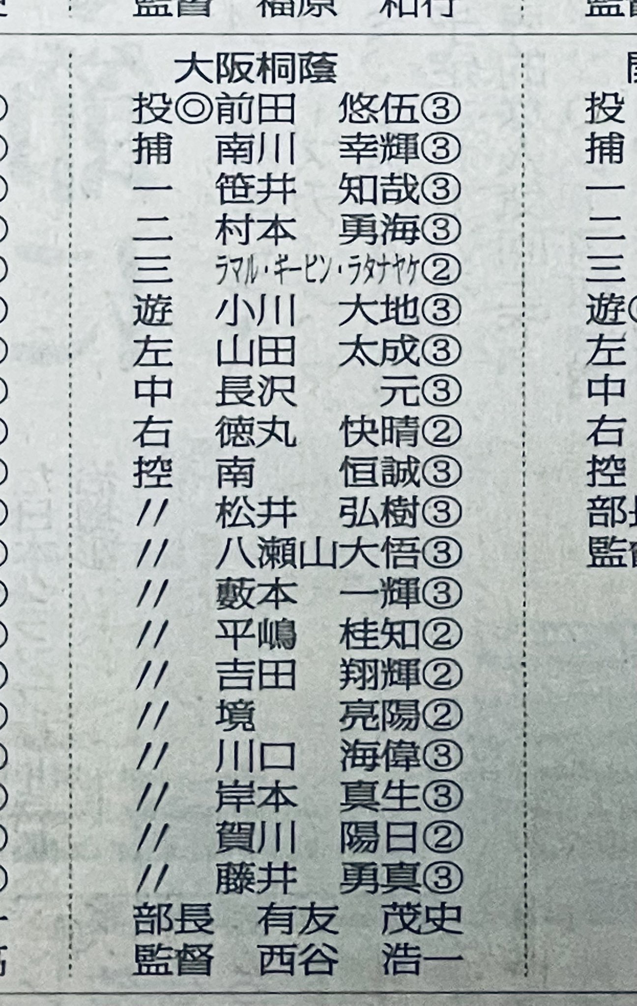 大阪桐蔭の授業中にガムを噛んでいた野球部員、メンバー漏れ
