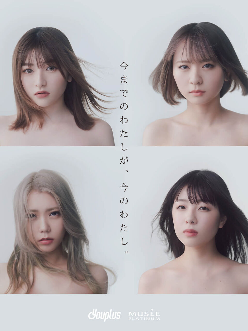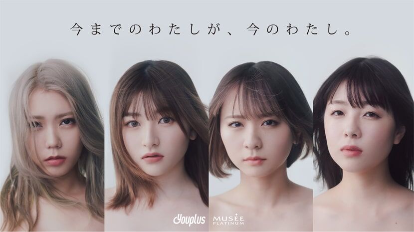 Youplusは元アンジュルムの中西香菜、元乃木坂46の川後陽菜、元モーニング娘。の尾形春水、元フェアリーズの林田真尋の4人組。