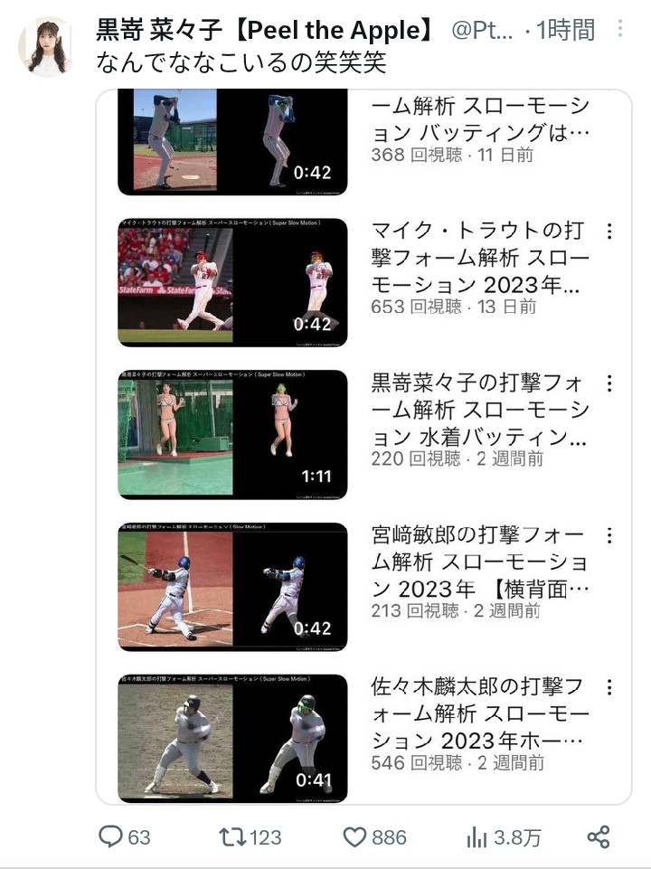 巨人ファン女子、水着での打撃フォームを解析されてしまう