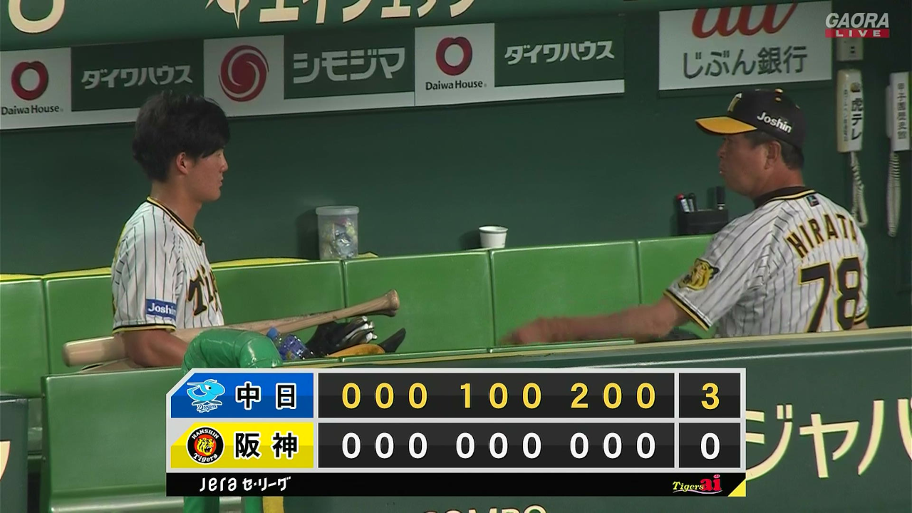 阪神 2年目の前川右京 試合終了直後、平田ヘッドコーチに説教される