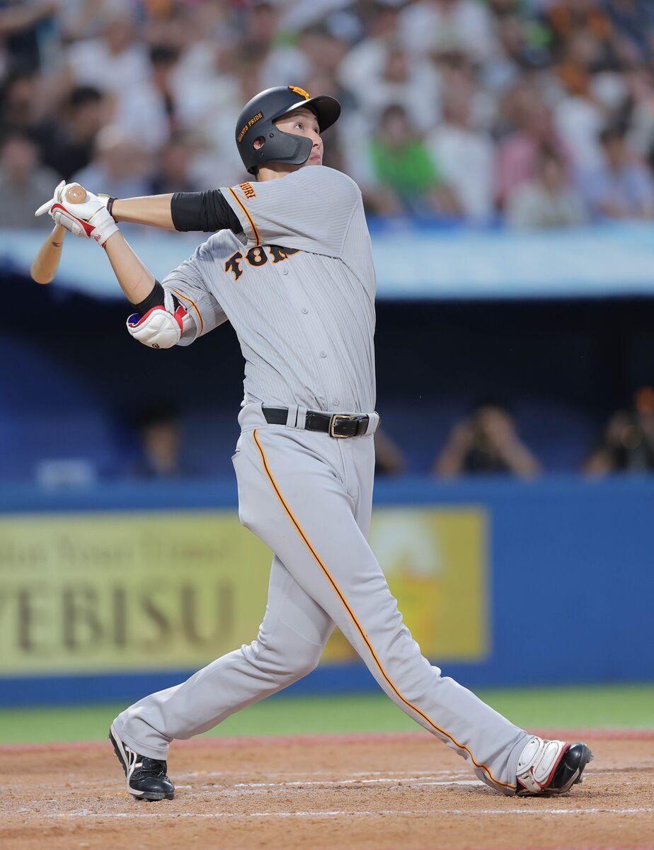 前半戦最終戦は6打数2安打。65試合で打率2割9分9厘、8本塁打、25打点で終了した。惜しくも「3割ターン」とはいかなかったが、堂々の結果の成績。5月25日・DeNA戦(東京D)から3番に大抜てきされると、そこから1試合を除く39試合で中軸を担い続ける。3、4月はチームの先発3番の打率が1割2分9厘だったが、3年目の20歳がその問題を解決した。