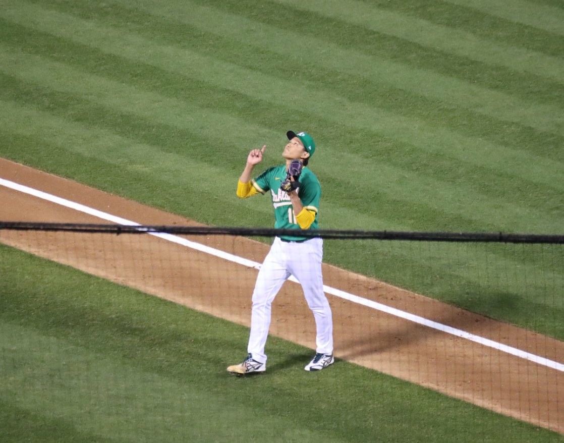 3アウト目を奪うと右拳で胸をたたき、天に向かって人さし指を掲げた。練習中は左袖に喪章をつけて過ごすなど弔意を表現していた。