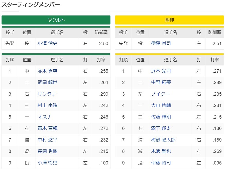 昨日と同じスタメンやんけ