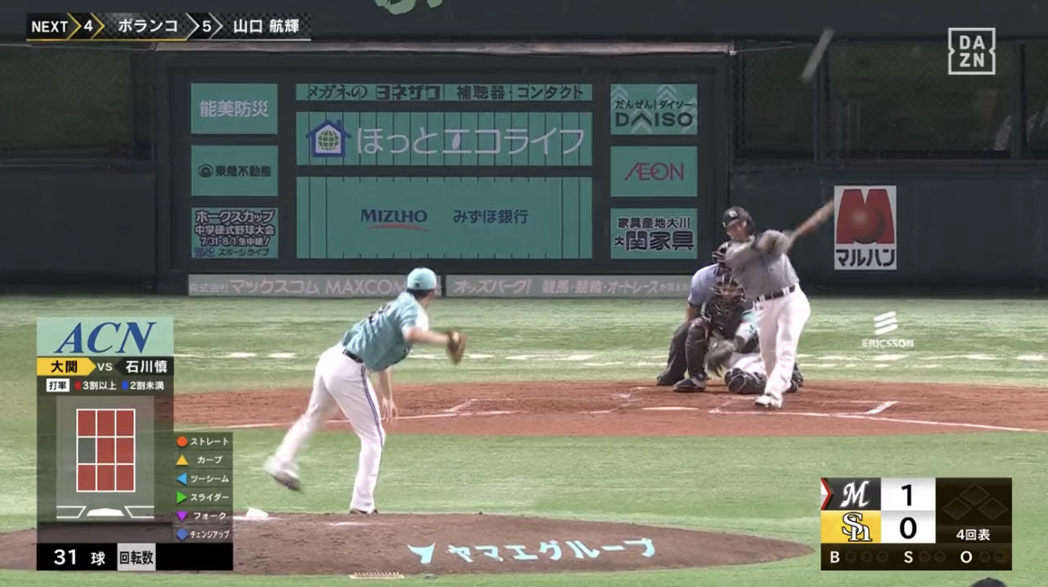 📱Live on DAZN#DAZNプロ野球#chibalotte pic.twitter.com/YAdmRlXZ52— DAZN Japan (@DAZN_JPN) July 29, 2023