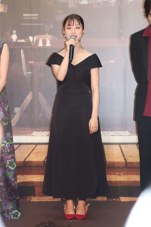 橋本は胸元ザックリの黒いオフショルダードレスで登場し、視線を釘付け。発光するような白い肌に大人の色香を漂わせ、おじぎすると、無数のフラッシュを浴びた。