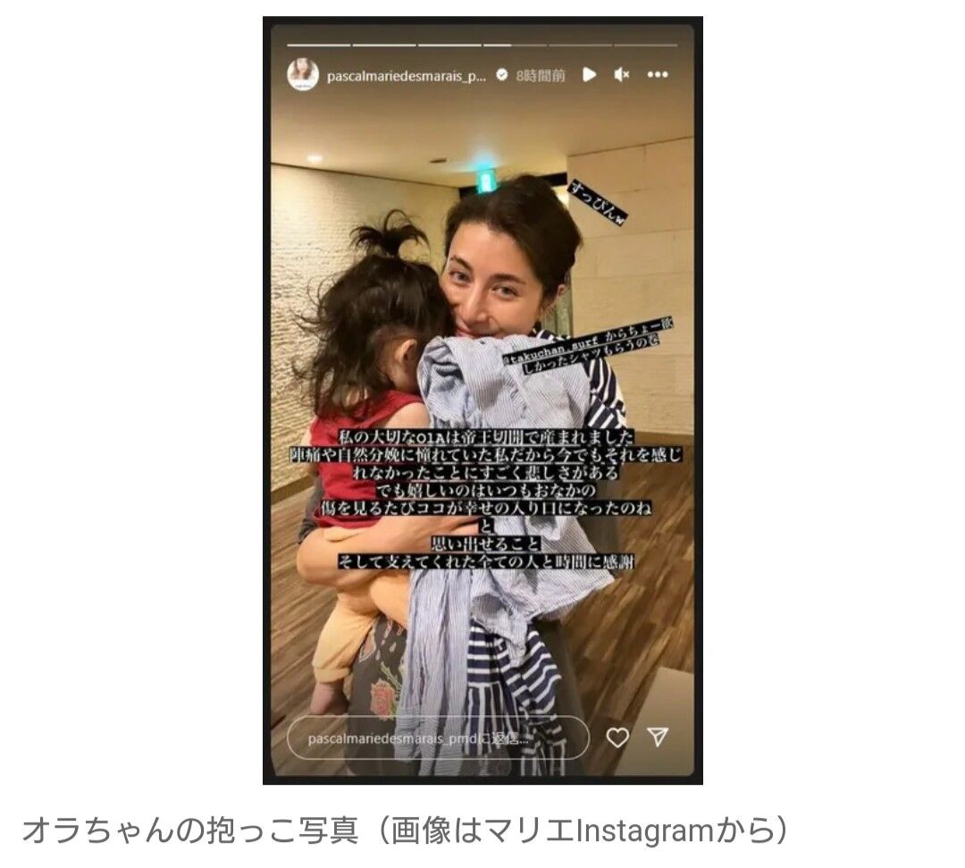2022年10月に第1子となる娘のオラちゃんをメキシコで出産していたマリエさん。Instagramではたびたびオラちゃんの写真を投稿しており、2023年8月2日には抱っこしての2ショットとともに帝王切開での出産を回想。