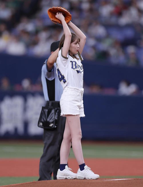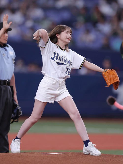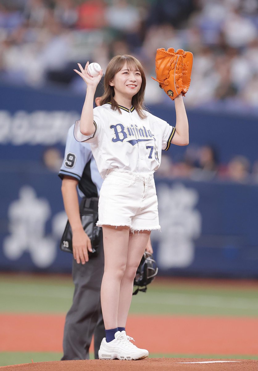 【オリックス】元乃木坂の秋元真夏がショーパン始球式、今回は“間違えず”ホームへ投球