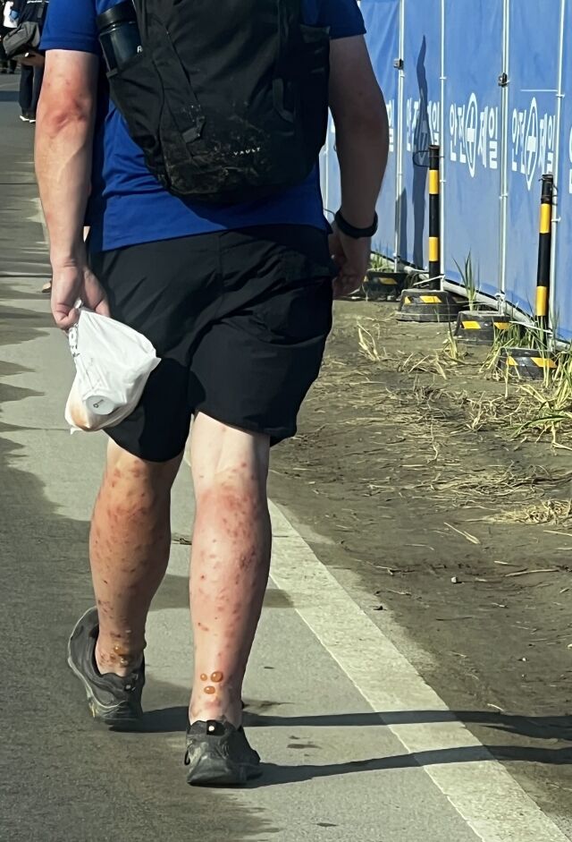2023年のセマングム世界スカウトジャンボリーでは、外国人参加者の足が虫刺されで赤く腫れています。聯合ニュース