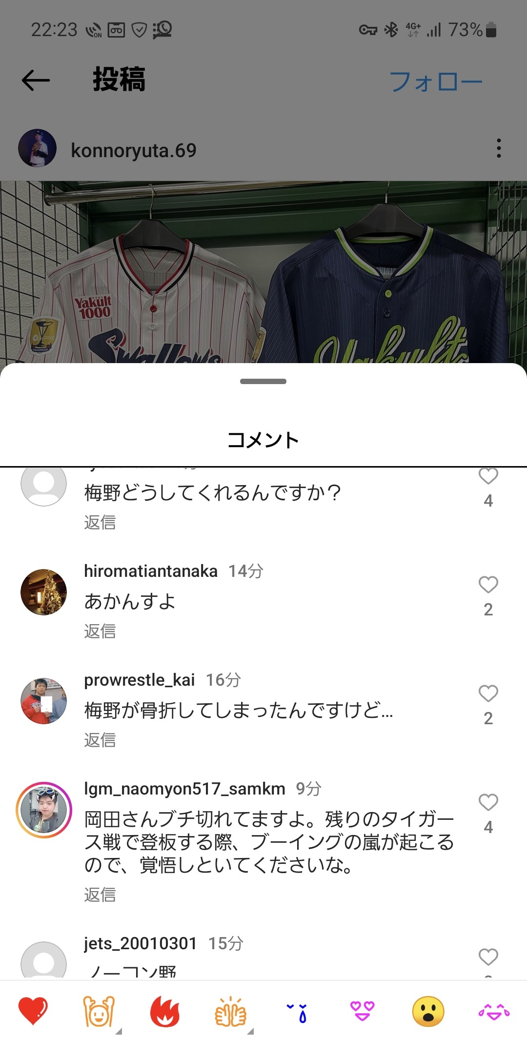 【悲報】ヤクルト今野のインスタ早速阪神ファンに荒らされるwwwwwwwwwww