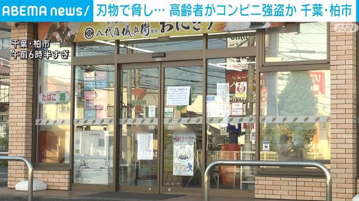 21日未明、千葉県柏市のコンビニ店に男が押し入り、店員を刃物で脅して現金を奪い逃走しました。男は高齢者とみられています。