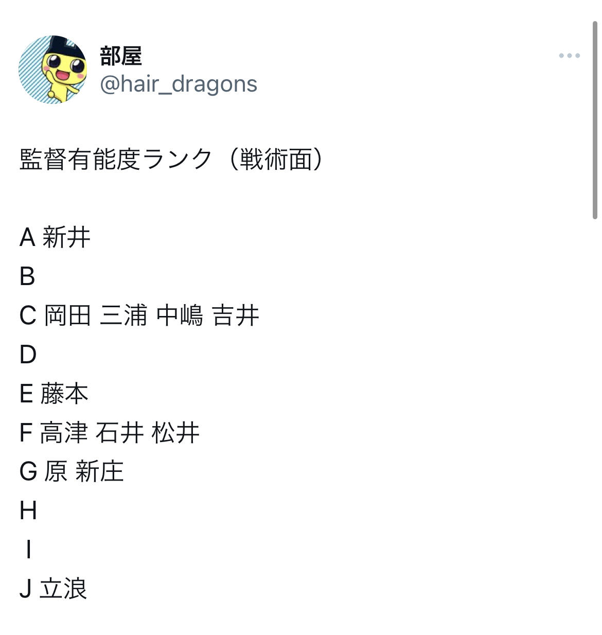 【朗報?】広島カープ新井貴浩監督、監督ランキング1位だったwwwwwwwwwww