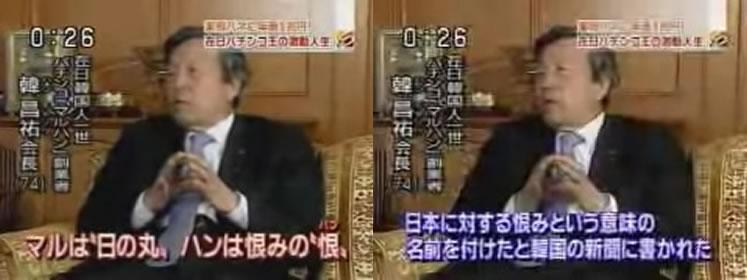 このデマの根拠とされるものは、マルハンの韓会長がテレビのインタビューで名前の由来について聞かれた際に、「マルは日の丸 ハンは恨みのハン」だと答えたというキャプチャ画像です。