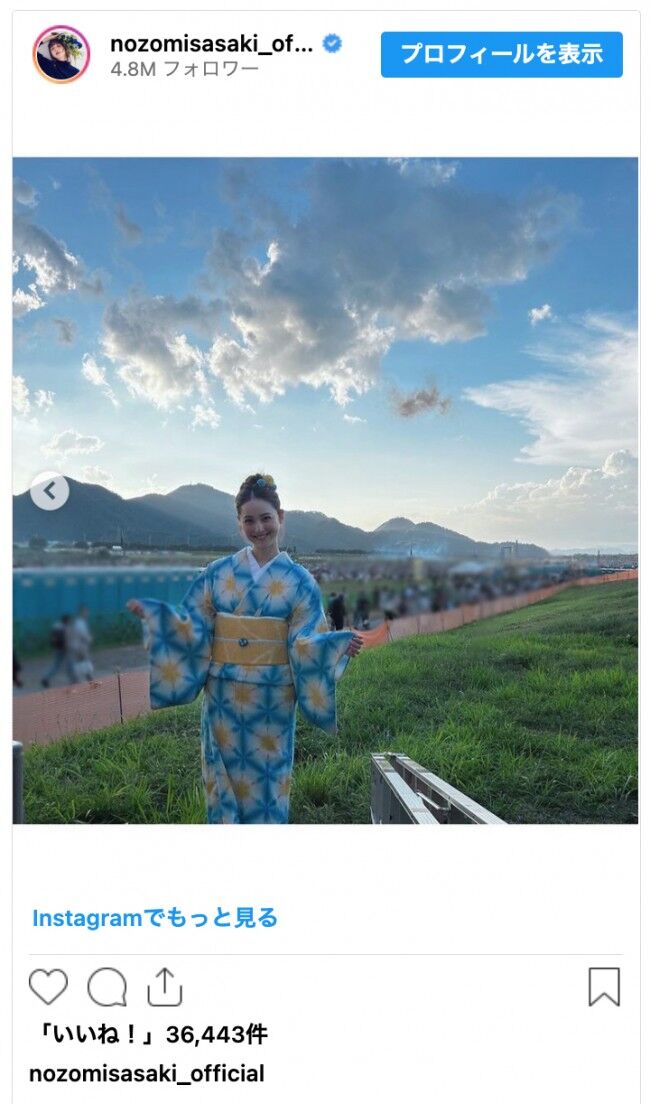 佐々木希「神レベル」大曲花火大会で浴衣姿「絵画みたい」「額に入れて飾りたい」の声続々