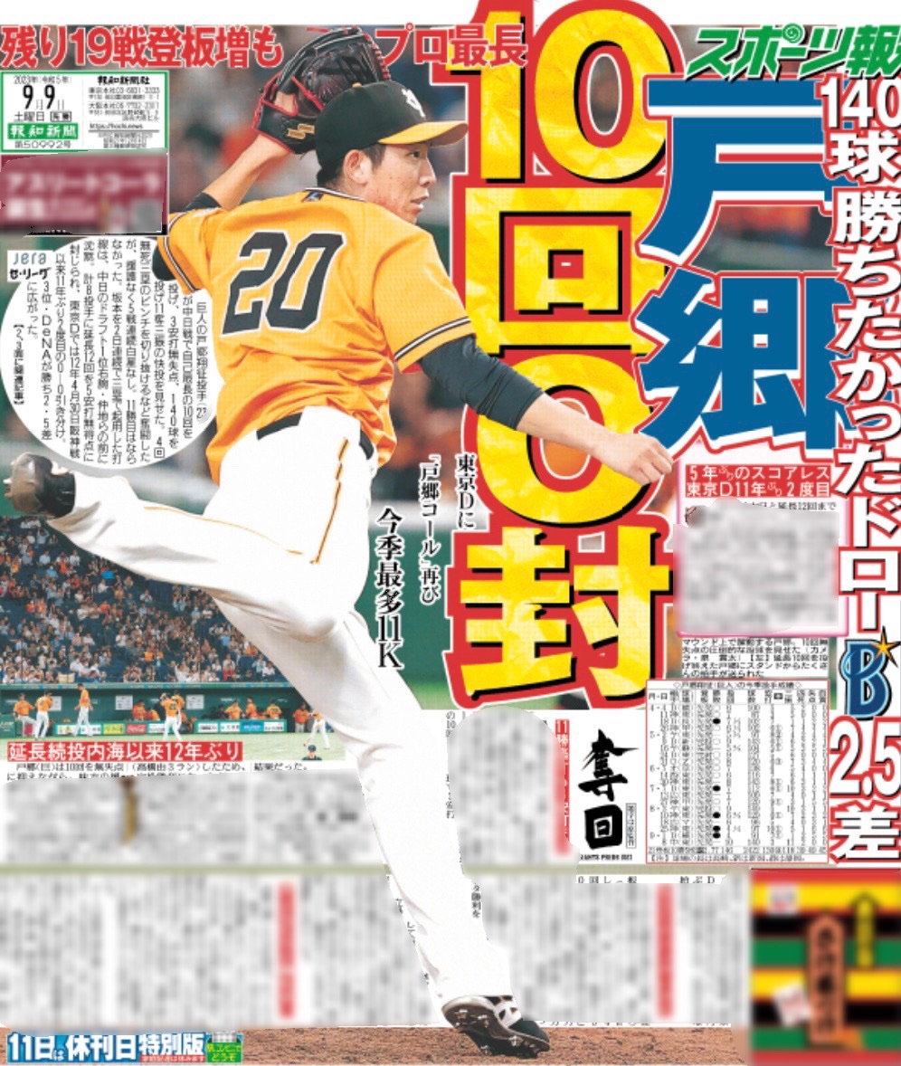 巨人・戸郷 (10回0失点140球)「もう1回投げられた」