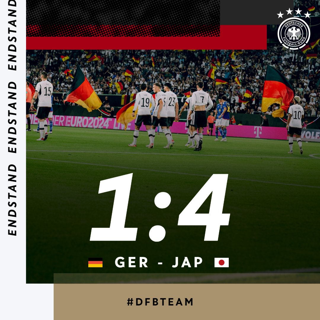 サッカー日本代表は9日、ドイツ・ウォルフスブルクでドイツと親善試合を行い、4-1で快勝した。昨年カタール・ワールドカップ(W杯)から連勝。敗戦を伝えるためにドイツ代表公式の投稿した画像に対し、日本人ファンから「JPNがJAPになってる」「配慮足りないな」などと反応が集まっている。
