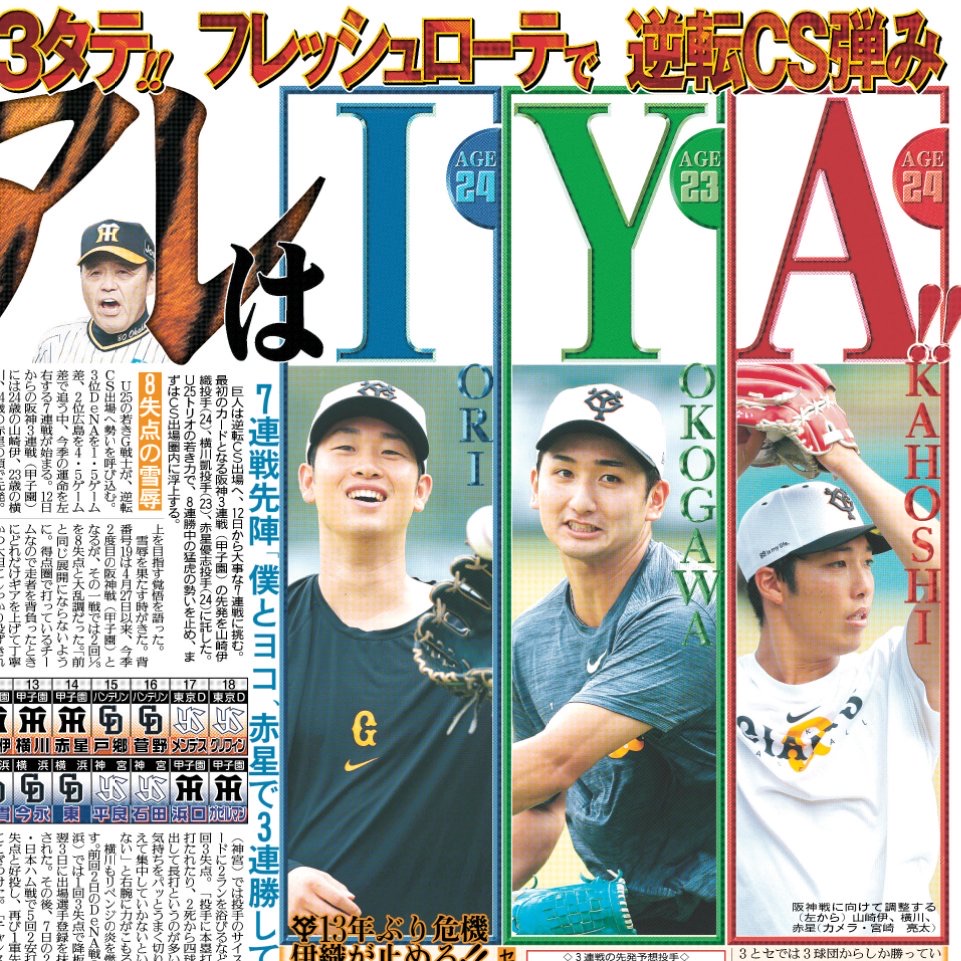 9/12付 #スポーツ報知 #巨人 今日から阪神3連戦#山崎伊織 #横川凱 #赤星優志 選手のフレッシュローテで挑みます!