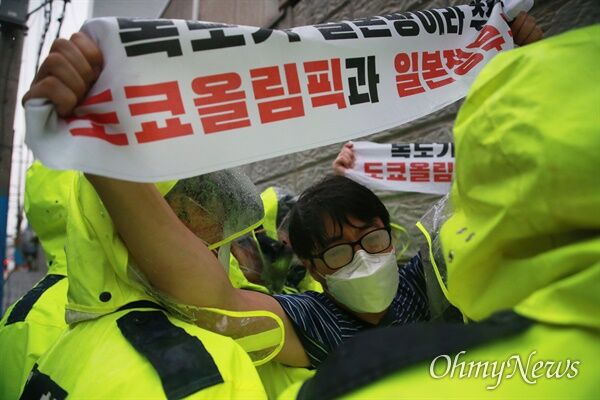 2021年6月3日、韓国・オーマイニュースは、東京五輪の公式ウェブページ上の竹島表記に反発し、韓国の大学生が日本総領事館前で「奇襲デモ」を行ったと伝えた。