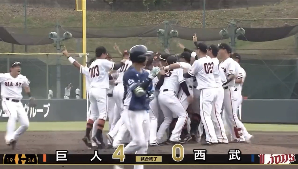 巨人、5年ぶり2軍優勝! 井上が1安打完封勝利
