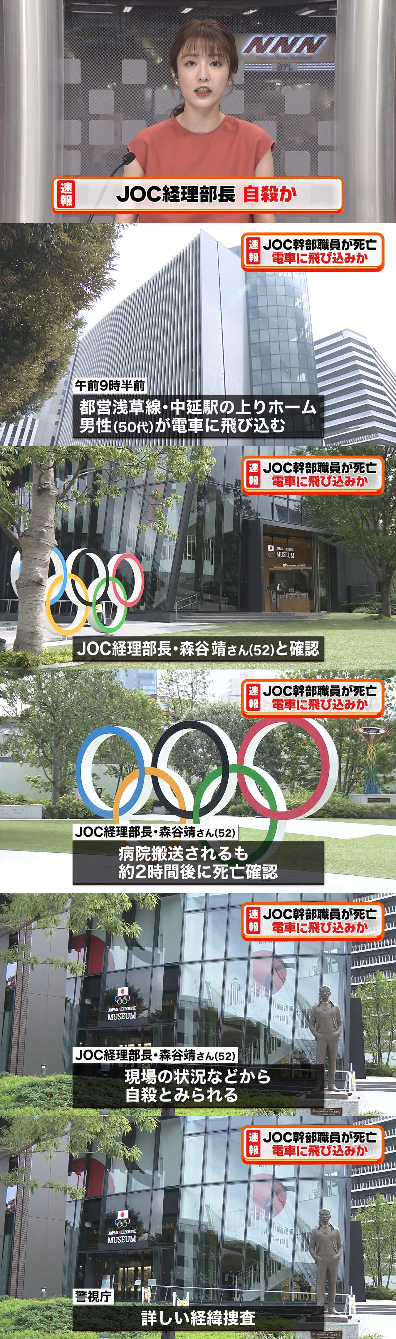 7日午前、JOC幹部の経理部長である森谷靖さんが電車に飛び込む人身事故が発生、現場の状況から自殺と報道されています。