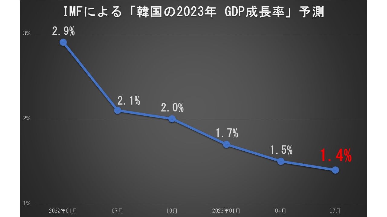 上掲のとおり、『IMF』は中国経済がリオープニングすれば韓国にもチャンスがある――としていたのですが、「やっぱりなかったな」と態度を変えました。