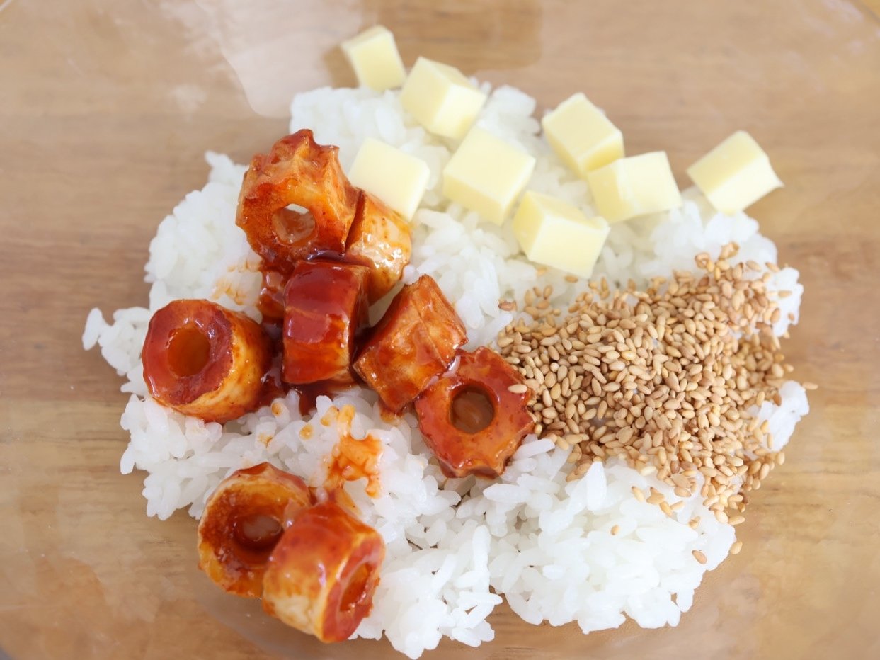 「ヤンニョムちくわおにぎり」の作り方(調理時間:5分)