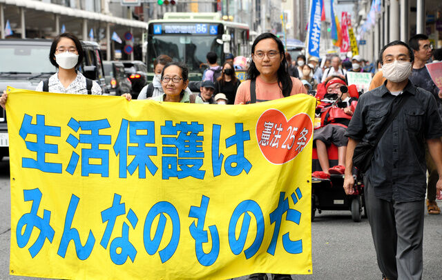 憲法25条は「健康で文化的な最低限度の生活を営む権利」を保障するよう政府に命じている。その政府は生活保護費を大きく削っている。京都では、生活保護を使いながら地域で自立生活をしている障害者が「生活保護改悪に反対する人々の会」(小松満雄代表)をつくり、「全京都生活と健康を守る会連合会」とともに政府を相手に裁判中だ。