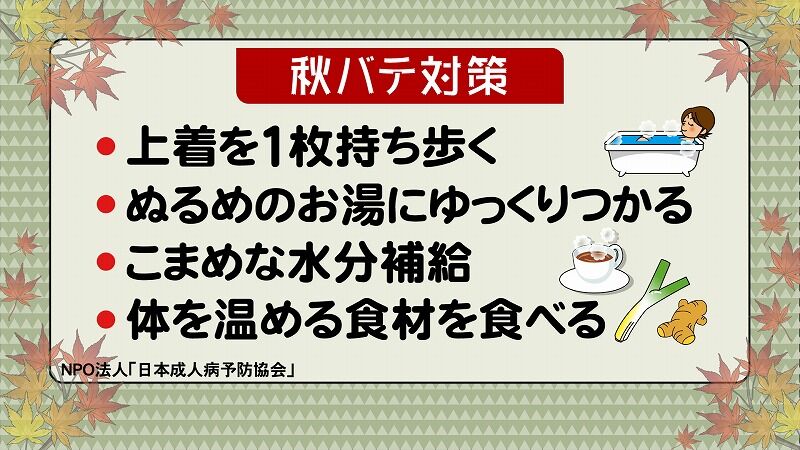 急な冷え込みで「秋バテ」に注意! ”夏布団+毛布”で柔軟な体温調節を …このところ、体調のすぐれない人が多いと思われます。そこで「秋バテ」の傾向と対策を取材しました。 この時期、要注意なのが“秋バテ”と呼ばれる症状です。 急な気候の変化… (出典:メ〜テレ(名古屋テレビ)) |
