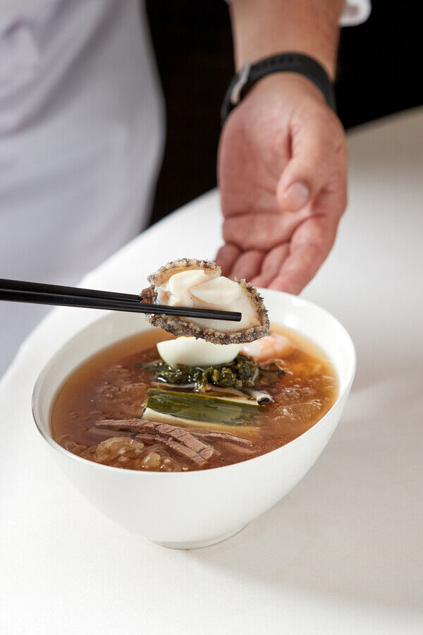 ▲ ロッテホテルの中食堂(中国料理店)『桃林』のヨン・ギョンオクシェフが中国冷麺を作っている。