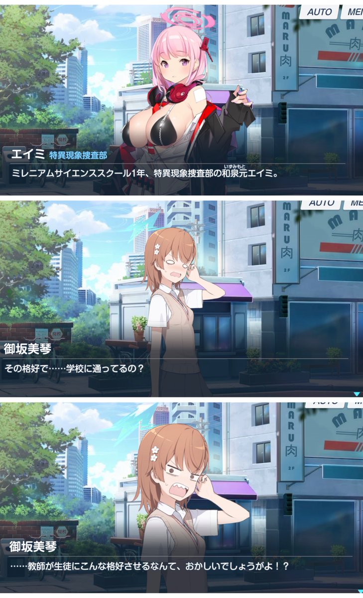 『とある科学』の御坂美琴さん、ブルアカキャラの露出狂ファッションにドン引きする
